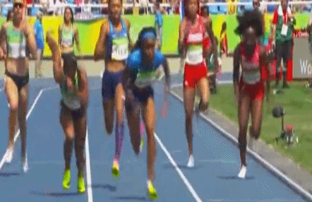 再观察一下正面的慢动作回放,巴西选手在启动时,手肘摆到最后的一瞬似乎确实碰到了什么,在那一刻费利克斯和她的脚下同时出现踉跄。