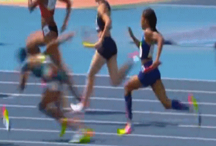 回放比赛慢镜,我们首先可以注意到,美国队失误是在二三棒位置,费利克斯没把棒递到加德纳手上,直接甩了出去,而加德纳没能接住飞来的接力棒,导致掉棒。