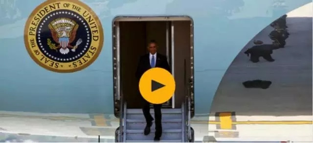 话说,当时奥巴马的空军一号抵达杭州萧山国际机场后,他并没有从飞机的前门下机,而是反常地从机尾下机,且地面上也没有红毯。