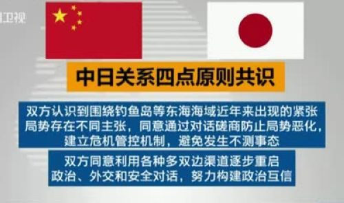 习近平指出,中日双方应该根据四点原则共识精神,通过对话磋商加强沟通,妥善处理东海问题,共同维护东海和平稳定。日方在南海问题上要谨言慎行,避免对中日关系改善造成干扰。