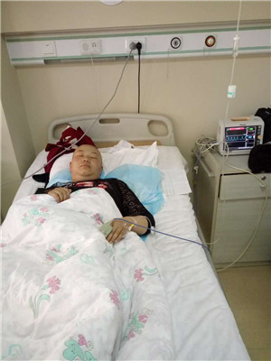 正在病床上接受治疗的郭红